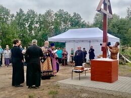 Богослужения совершаются в деревянном храме согласно расписанию.
