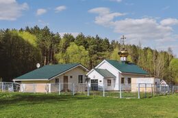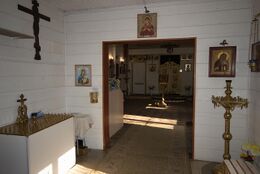 Храм священномученика Владимира, митрополита Киевского и Галицкого, в Южном Бутове (Москва). Деревянный храм прихода Владимира, митрополита Киевского, в Южном Бутово. Простой объём из клееного бруса под двускатной крышей с западным притвором, без апсиды. Построен за 17 дней, освящён 7 декабря 2012 г.
