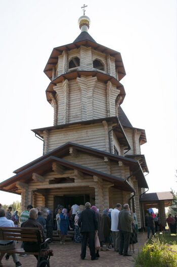 Деревянный храм, возведенный на берегу реки, представляет собой интересный пример современного церковного зодчества, обращающегося к традициям русского деревянного храмового строительства.