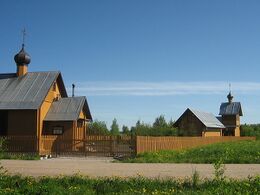 Храм святителя Николая Чудотворца в Колпино (Санкт-Петербург) Деревянная церковь, поставленная в 1997-1998 как первая постройка комплекса вновь строящегося собора. Четверик, перекрытый высокой четырёхскатной кровлей, с открытыми крыльцами.