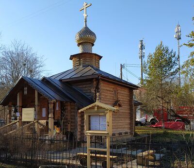 Возведение деревянной часовни-храма из сруба началось осенью 2007 года, а к концу года строительство уже завершилось. 2 февраля 2008 года часовня была освящена. Чин освящения совершил благочинный Царскосельского округа, настоятель Софийского собора протоиерей Геннадий Зверев.