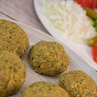 Фасоль, лук репчатый, чеснок, панировочные сухари, лимонный сок, кунжут, укроп, петрушка, зира, кориандр, паприка, соль, чёрный перец, растительное масло.