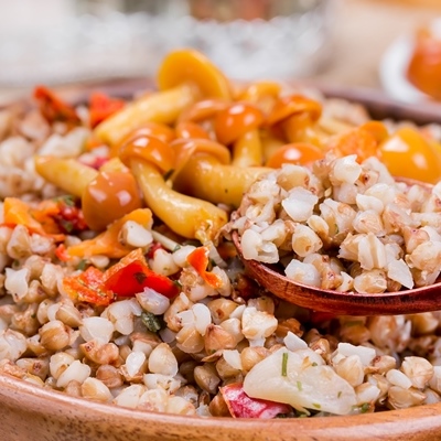 Гречка, рис, морковь, томаты в собственном соку, крахмал, соль, перец, растительное масло.